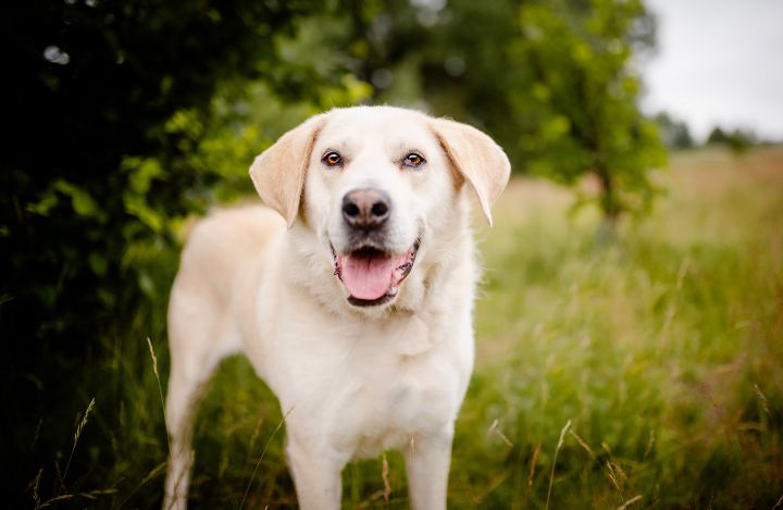 Kokos to kilkuletni psiak w typie labradora - maślany wzrok, merdający ogon i uśmiechnięty pychol.