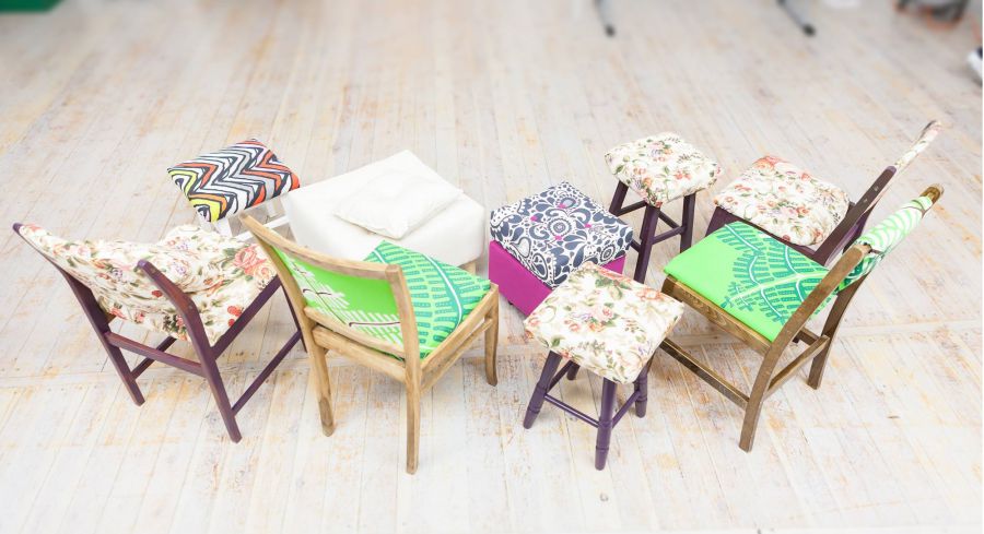 Pracujemy na Waszych własnych, przyniesionych do Bajli meblach. Mile widziane będš fotele, krzesła, siedziska, poduchy i Wasze pomysły i propozycje.