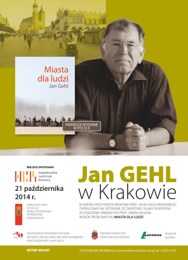 Zapraszamy serdecznie na spotkanie z Profeosrem Janem Gehlem 21 padziernika 2014r. NCK Kraków, godz. 18.30, wybitnym duńskim architektem i urbanistš, propagatorem koncepcji humanistycznego rozwoju miast i autorem projektów zmian w przestrzeni miejskiej m.in. Nowego Jorku i Moskwy.
