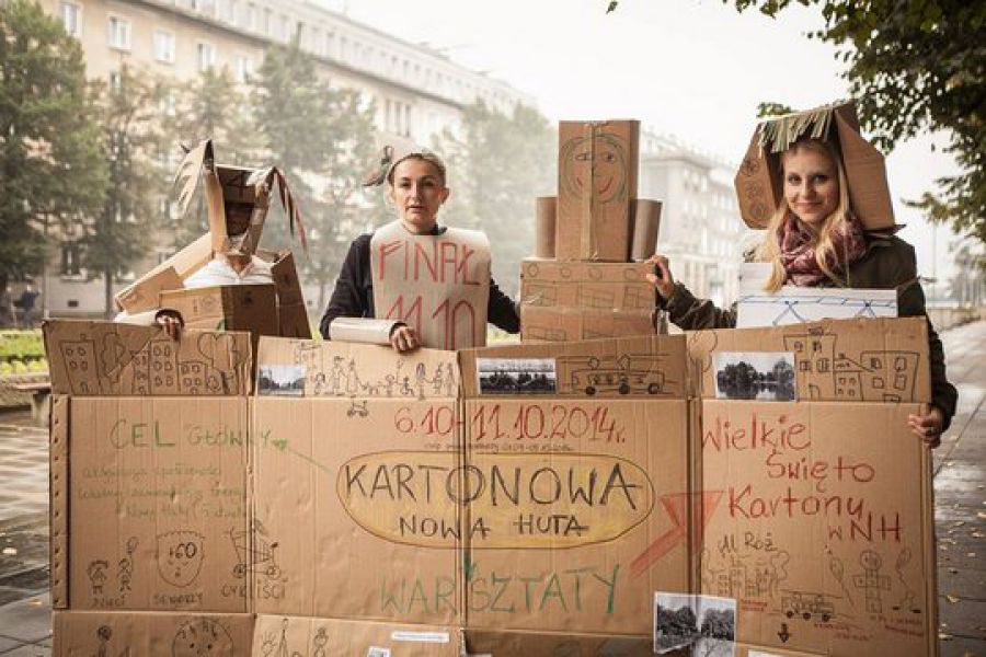 Finałem warsztatów będzie Wielkie więto Kartonu planowane w Alei Róż, podczas którego wybudujemy Kartonowe Osiedle i zaprosimy mieszkańców do wspólnego happeningu "4 do HUTY".