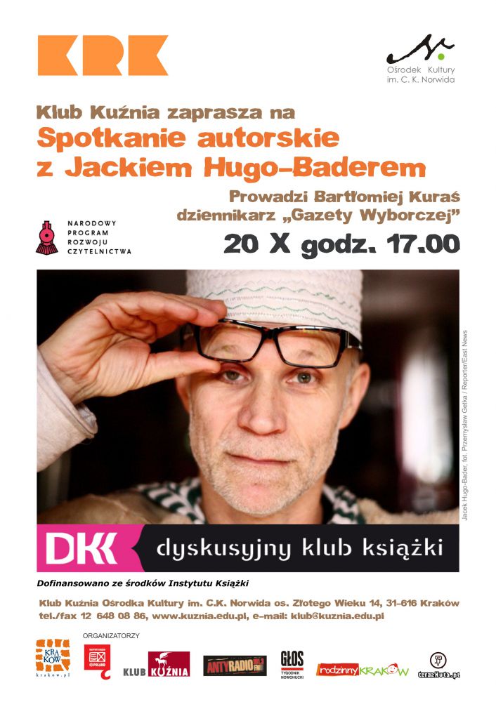 Dyskusyjny Klub Ksišżki Klubu KuŸnia zaprasza na spotkanie z reporterem Jackiem Hugo-Baderem 20 paŸdziernika o godz. 17.00 na os. Złotego Wieku 14.