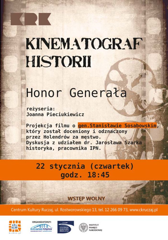 Projekcja filmu o gen. Stanisławie Sosabowskim, który został doceniony i odznaczony przez Holendrów za męstwo.