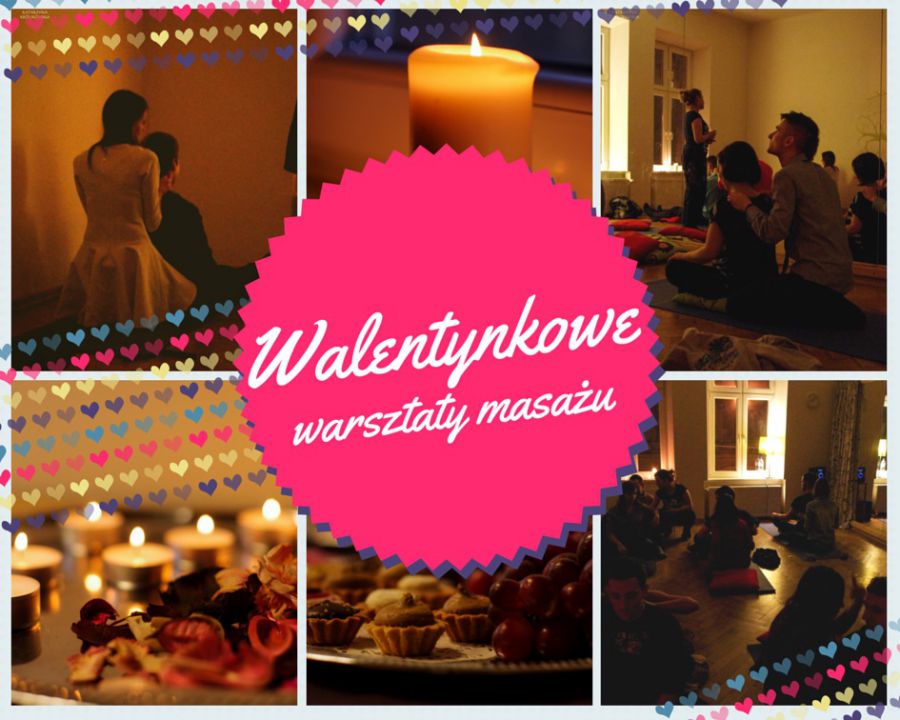 Pod okiem dowiadczonej masażystki zadbamy o zdrowie naszych kręgosłupów i nauczymy się kilku podstawowych i bardzo przyjemnych sposobów masażu mięni karku. Będziemy ćwiczyć w parach, na siedzšco, w wygodnym ubraniu. Dowiemy się, jak rozlunić spięte i zestresowane mięnie, a póniej bezpiecznie wykorzystać nowo zdobyte umiejętnoci w domu, podczas romantycznych wieczorów przy blasku wiec. Z warsztatów wyjedziemy z cudownym uczuciem rozlunienia i relaksu, gotowi na dalszš częć walentynkowej randki.