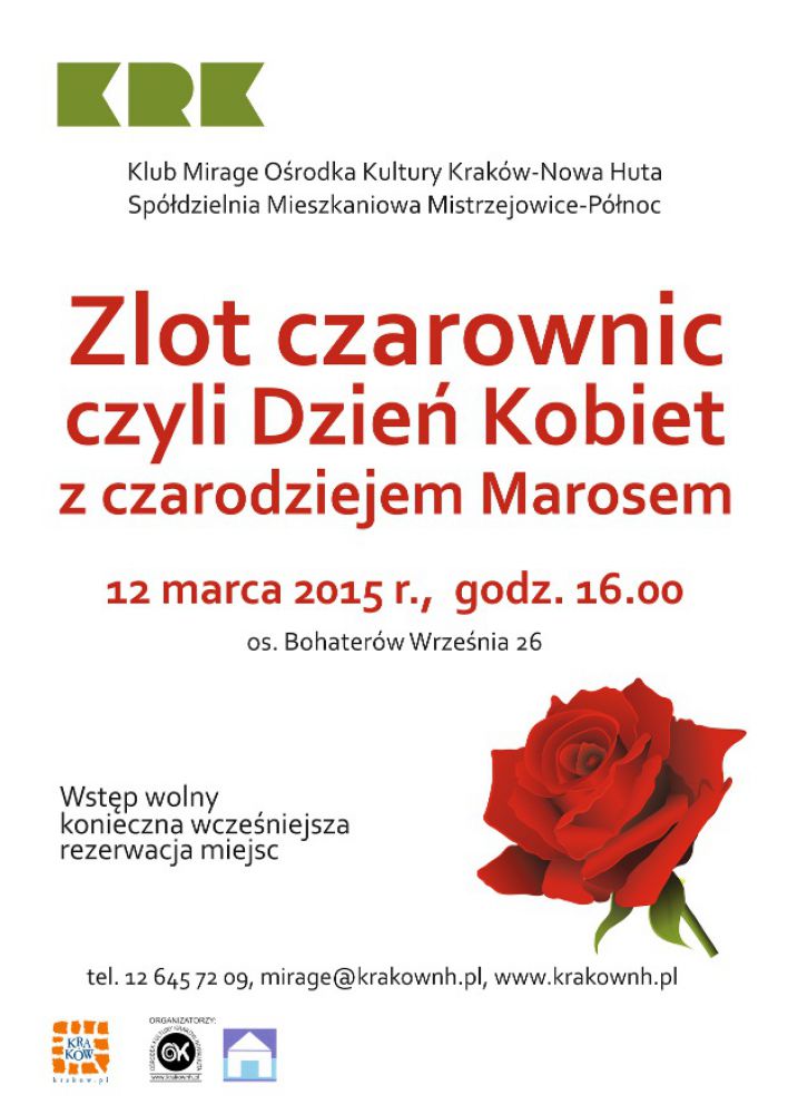 Czarownice, czarodziejki, czarujšce tak często mówi się o kobietach w zależnoci w jakim nastroju jest mężczyzna , który o nich opowiada. Tym razem to on będzie czarował uwodzicielskim spojrzeniem, błyskiem w oku, nienagannymi manierami a przede wszystkim głosem. W wiat piosenek o kobietach i dla kobiet zabierze uczestniczki spotkania Czarodziej Maros. Dla pań, które przyjdš w czarodziejskim przebraniu przewidziano upominki. Zapraszajš: Klub Mirage Orodka Kultury Kraków-Nowa Huta oraz Spółdzielnia Mieszkaniowa "Mistrzejowice- Północ".