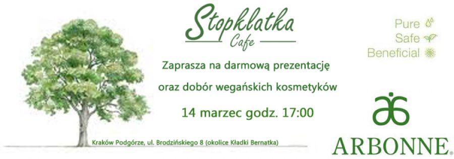 Kawiarnia Stopklatka zaprasza wszystkich na darmowš prezentację wegańskich kosmetyków firmy Arbonne.