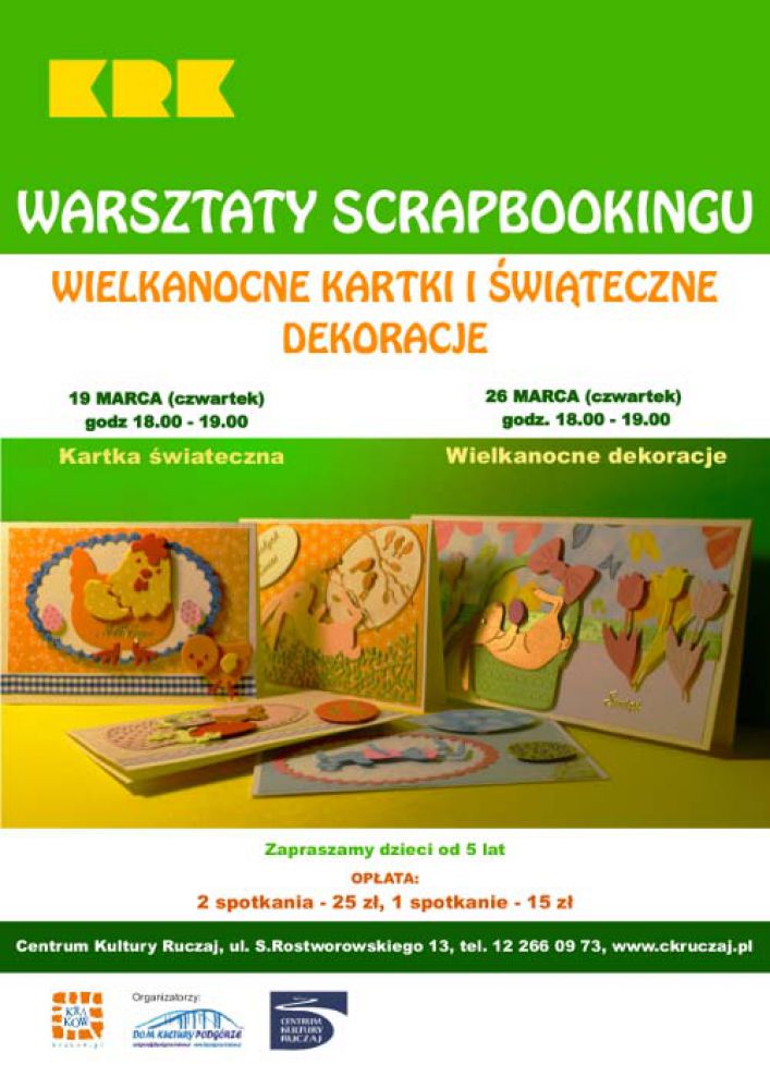 Zapisy w biurze CK "Ruczaj", ul. Rostworowskiego 13, od pn-pt w godz. 13:00-21:00, tel. 12 266 09 73 lub mailowo: biuro@ckruczaj.pl.
