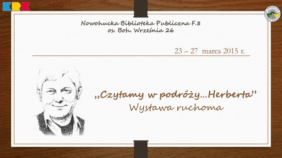 Herberta. W cyklu: Klub bibliomaniaków Biblioteka zaprasza na wystawę ruchomš powięconš Zbigniewowi Herbertowi. Będzie to wystawa ruchoma, co oznacza możliwoć wypożyczenia wybranych przez siebie ksišżek, a także wymiany opinii na temat twórczoci cenionego polskiego poety, eseisty, dramaturga.
