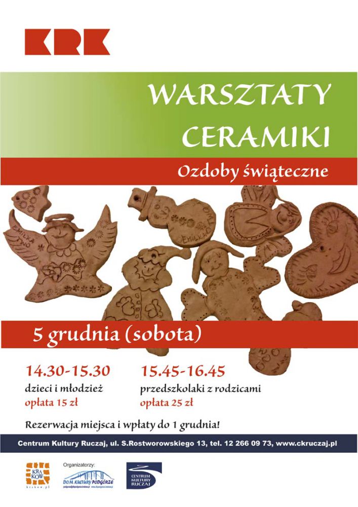 Centrum Kultury "Ruczaj" zaprasza dzieci i młodzież na wišteczne warsztaty, podczas których będzie można stworzyć ozdoby na choinkę. Własnoręcznie wykonane będš pięknie prezentować się na bożonarodzeniowym drzewku, a także będš trwałš pamištkš.