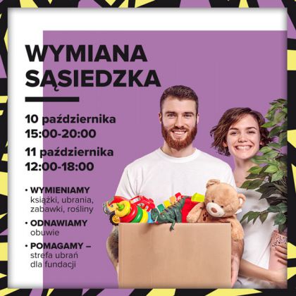 Wymiana Sąsiedzka odbędzie się w piątek, 10 października, w godz. 15:00-20:00 oraz w sobotę, 11 października, w godz. 12:00-18:00, w Galerii Bronowice.